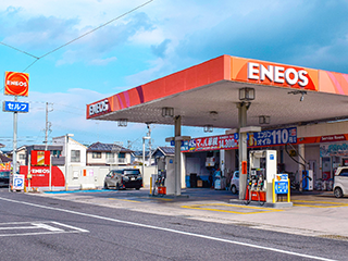 | 運輸局認証整備工場併設のセルフガソリンスタンドです。 ENEOSカードでお得に給油!詳しくはスタッフまで。 |